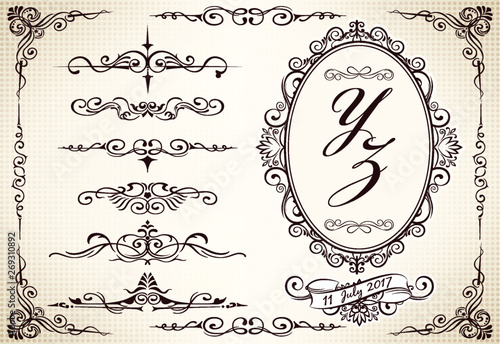 Ornate Retro Labels Flourishes Elements Calligraphy Swirls Corner Ornaments And Frames Wall Mural Katyakatya